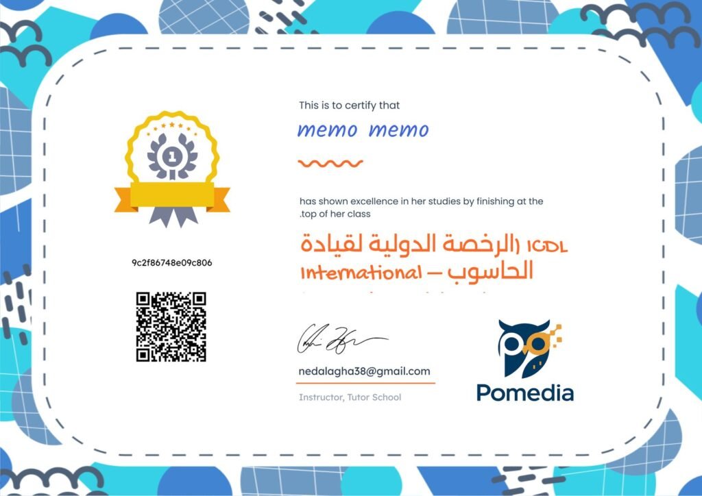 عند إكمال الدورة بنجاح، تحصل على شهادة رقمية تعبّر عن إنجازك وتدعم مسارك الأكاديمي أو المهني.
